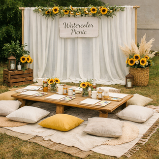 Join us for a special afternoon of art and sunshine at our Spring Watercolor Picnic, held just steps from the beautiful campus of Winthrop University. The setting will be thoughtfully decorated with sunflowers, flowing fabrics, and cozy cushions to create a welcoming and memorable experience.